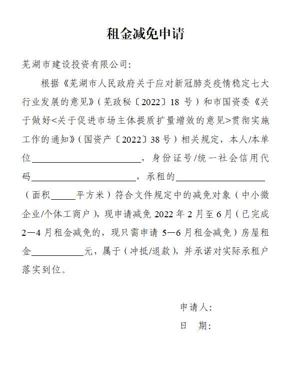 租金減免申請(qǐng)書(減免5個(gè)月)